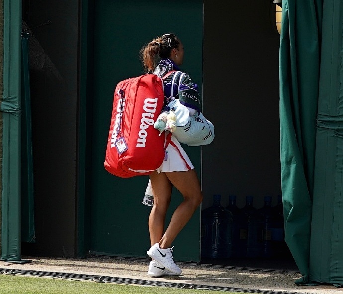 最后来猜一猜认一认。下面这张图片是一位球员背包离场。不作提示,您能认出她是谁吗?